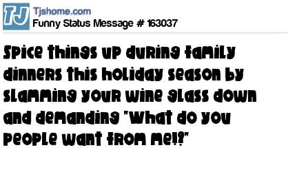 X says Spice things up during family dinners this holiday season by slamming your wine glass down and demanding "What do you people want from me!?"