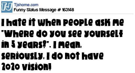 - # 157263 I hate when people ask me what I'll be doing in five years, come on guys I don't have 2020 vision.