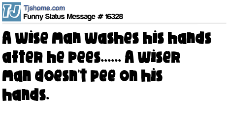 - # 204794 A wise man washes his hands after he pees. A wiser man doesn't pee on his hands...
