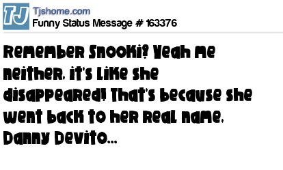 X says Remember Snooki? Yeah me neither, it's like she disappeared! That's because she went back to her real name, Danny Devito... 😂