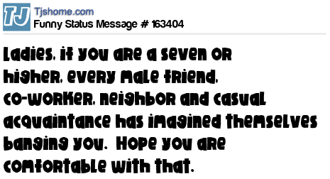 X says Ladies, if you are a seven or higher, every male friend, co-worker, neighbor and casual acquaintance has imagined themselves banging you. Hope you are comfortable with that.