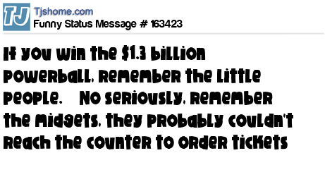 X If you win the $1.3 billion powerball, remember the little people. No seriously, remember the midgets, they probably couldn't reach the counter to order tickets