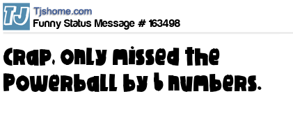- # 163508 I just went to print out last nights Powerball numbers to see if I won.... and it printed me a coupon for ramen noodles.