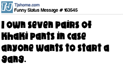 X says I own seven pairs of khaki pants in case anyone wants to start a gang.