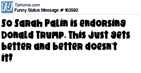 X says So Sarah Palin is endorsing Donald Trump. This just gets better and better doesn't it?