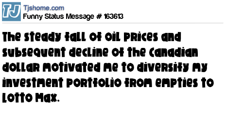 X says The steady fall of oil prices and subsequent decline of the Canadian dollar motivated me to diversify my investment portfolio from empties to Lotto Max.