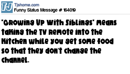 X says "Growing Up With Siblings" means taking the TV remote into the kitchen while you get some food so that they don't change the channel.