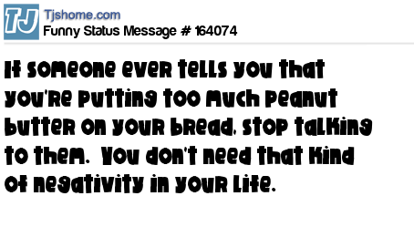 X says If someone ever tells you that you're putting too much peanut butter on your bread, stop talking to them. You don't need that kind of negativity in your life.