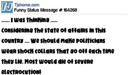 X ....... I was thinking ...... Considering the state of affairs in this country .... We should make politicians wear shock collars that go off each time they lie. Most would die of severe electrocution!