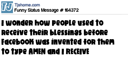 X says I wonder how people used to receive their blessings before Facebook was invented for them to type AMEN and I RECEIVE