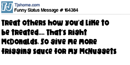 X says Treat others how you'd like to be treated.... That's right McDonalds, So give me more frigging sauce for my McNuggets