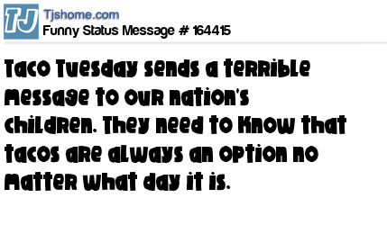 X says Taco Tuesday sends a terrible message to our nation's children. They need to know that tacos are always an option no matter what day it is.