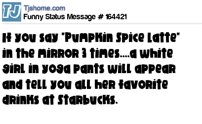 - # 137267 If you say "Pumpkin Spice Latte" 3 times in front of the mirror, a girl in a North Face jacket, yoga pants and Uggs will appear & tell you all her favorite things about fall, using the words "totally" and "like" nonstop