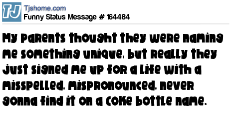 X says My parents thought they were naming me something unique, but really they just signed me up for a life with a misspelled, mispronounced, never gonna find it on a Coke bottle name.