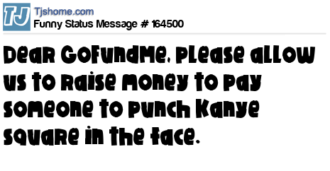 X says Dear GoFundMe, please allow us to raise money to pay someone to punch Kanye square in the face.