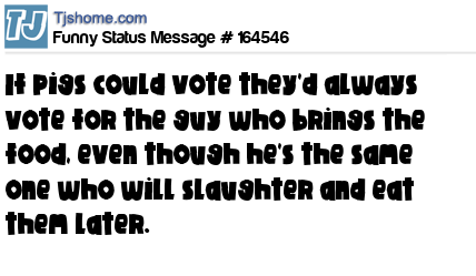 X says If pigs could vote they'd always vote for the guy who brings the food, even though he's the same one who will slaughter and eat them later.