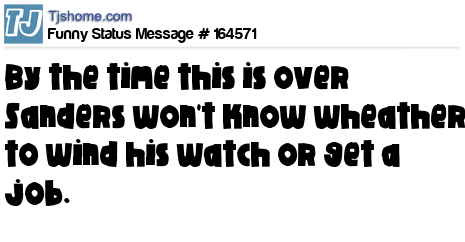 X  By the time this is over Sanders won't know wheather to wind his watch or get a job.