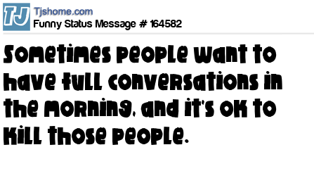 - # 164580 Sometimes poeple want to have full conversations in the morning, and it's ok to kill those people.