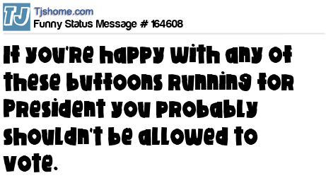 X If you're happy with any of these buffoons running for President you probably shouldn't be allowed to vote.