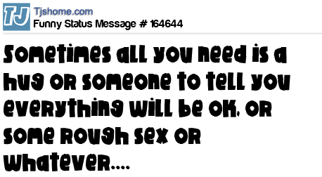 X says Sometimes all you need is a hug or someone to tell you everything will be ok, or some rough sex or whatever....