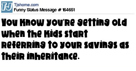X says You know you're getting old when the kids start referring to your savings as their inheritance.