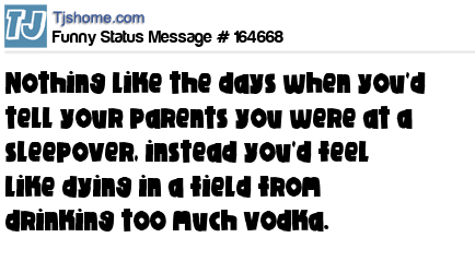 X says Nothing like the days when you'd tell your parents you were at a sleepover, instead you'd feel like dying in a field from drinking too much vodka.