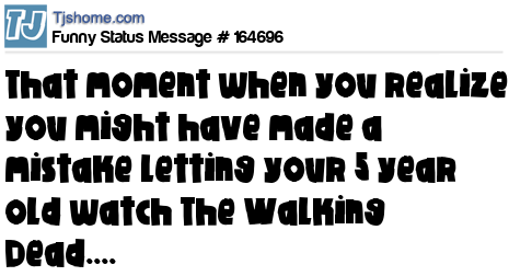 X says That moment when you realize you might have made a mistake letting your 5 year old watch The Walking Dead....