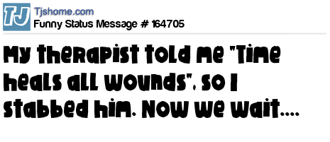 X says My therapist told me "Time heals all wounds", so I stabbed him. Now we wait....