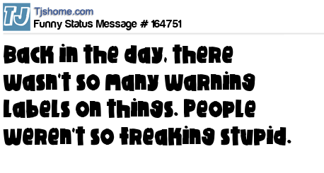 X says Back in the day, there wasn't so many warning labels on things. People weren't so freaking stupid.