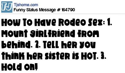 X says How To Have Rodeo Sex: 1. Mount girlfriend from behind. 2. Tell her you think her sister is HOT. 3. Hold on!