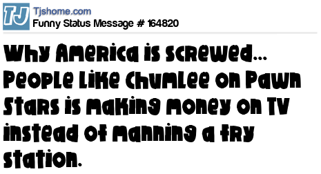 X says Why America is screwed... People like Chumlee on Pawn Stars is making money on TV instead of manning a fry station.