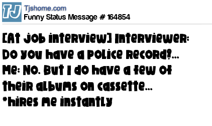 - # 157395 Interviewer: Do you have a police record. Me: No, but I do have a couple of their CD's. *gets hired on the spot*