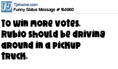 X says To win more votes, Rubio should be driving around in a pickup truck.