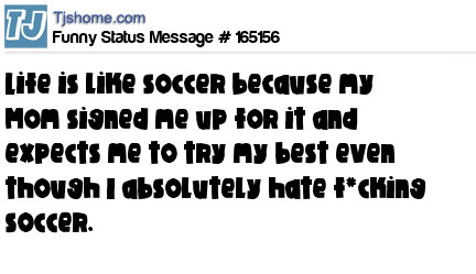 X says Life is like soccer because my Mom signed me up for it and expects me to try my best even though I absolutely hate f*cking soccer.