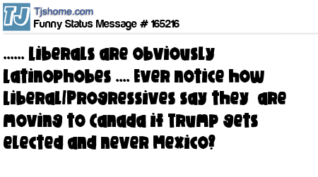 - # 171442 It turns out Liberals are "Latinophobes" .... You ever notice how they always say they are moving to Canada if Trump gets elected? Why don't they ever say they're moving to Mexico? Yup ... Latinophobes!!!