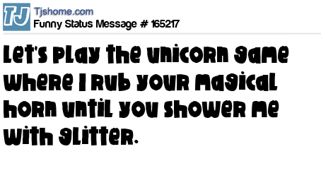 X says Let's play the unicorn game where I rub your magical horn until you shower me with glitter.