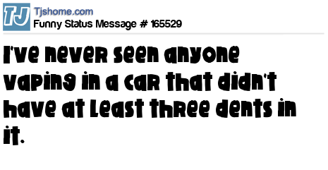 X says I've never seen anyone vaping in a car that didn't have at least three dents in it.