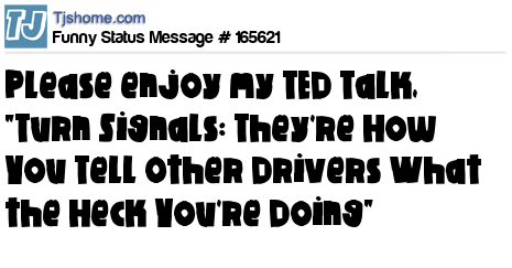 X says Please enjoy my TED Talk, "Turn Signals: They're How You Tell Other Drivers What the Heck You're Doing"
