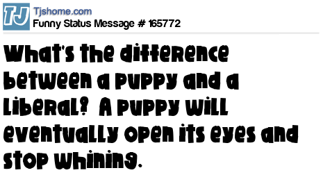 - # 143665 What's the difference between a puppy and a liberal? A puppy will eventually open its eyes and stop whining.