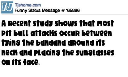 X A recent study shows that most pit bull attacks occur between tying the bandana around its neck and placing the sunglasses on its face.