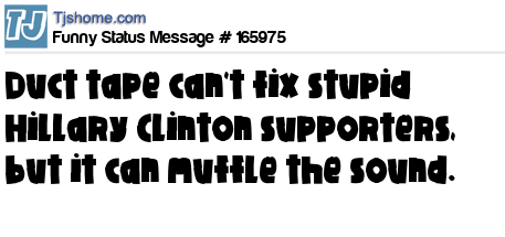 X says Duct tape can't fix stupid Hillary Clinton supporters, but it can muffle the sound.