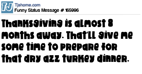 X Thanksgiving is almost 8 months away. That'll give me some time to prepare for that dry azz turkey dinner.