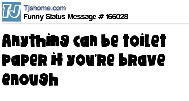 - # 113947 when I run out of toilet paper i'll awkwardly sit there and hope the toilet paper gods on his way