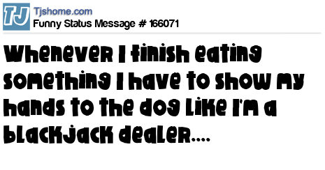 - # 161181 When I finish eating something I have to show my hands to the dog like I'm a blackjack dealer...