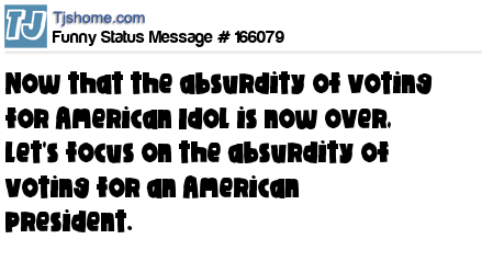 X says Now that the absurdity of voting for American Idol is now over, let's focus on the absurdity of voting for an American president.