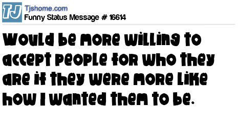 - # 27248 would be more willing to accept people for who they are if they were more like how I wanted them to be.