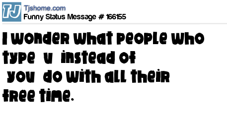 X I wonder what people who type “u” instead of “you” do with all their free time.