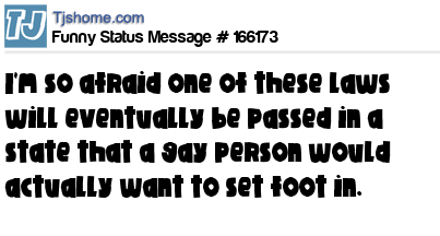 X says I'm so afraid one of these laws will eventually be passed in a state that a gay person would actually want to set foot in.