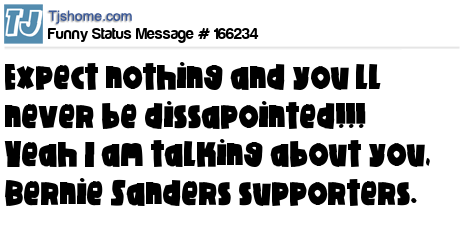 X says Expect nothing and you’ll never be dissapointed!!! Yeah I am talking about you, Bernie Sanders supporters.