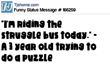 X says "I'm riding the struggle bus today." - A 3 year old trying to do a puzzle